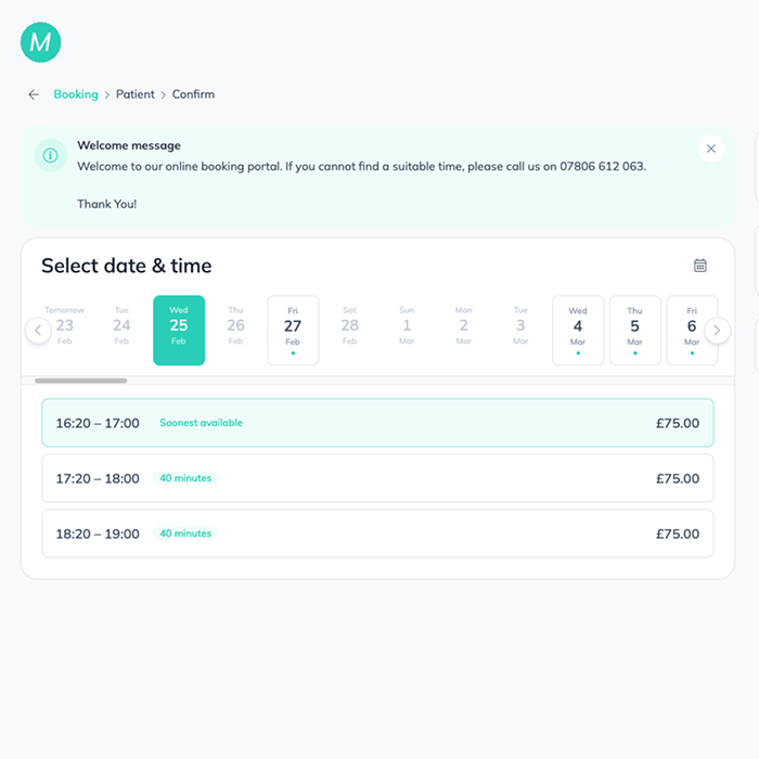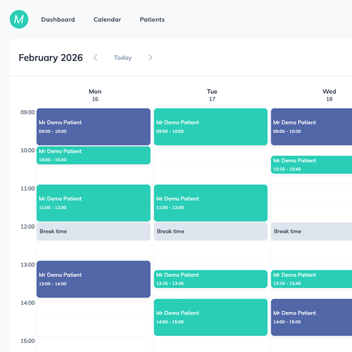 Manage your clinic schedule with the MyOsteopathy calendar.