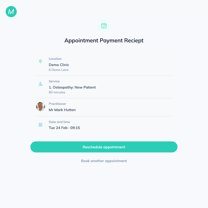 Send receipts to patients at the click of a button. Receipts are automatically generated at the end of each appointment.